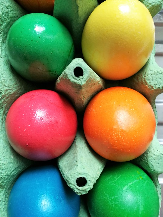 For a fun twist on egg dying you can use shaving cream whipped cream to give your eggs a tie-dyed effect! All you need is the shaving or whipped cream, food dye, a cooking sheet, and a straw!