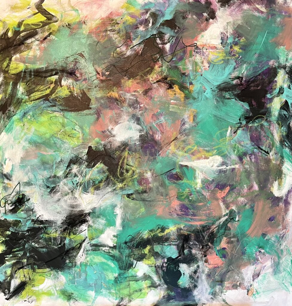 My love for abstract art has evolved yet stayed constant over the years. I have always been drawn to ‘different’ ways of creating images and making art that is messy, bold, colorful, and expressive. Blind contour drawing was an early outlet for me. I have experience with various media, but am currently painting with acrylics and using mixed media to create compositions that draw people in and ask, ‘How was this done?’ I am inspired by nature, life, death, emotions, and relationships. I have a lot of stories to tell and am constantly inspired by my surroundings. I enjoy learning from other artists and gathering tools to enhance my creative process. My work as an art therapist has also been a major influence. Acting as a catalyst between my clients and their mental health is very humbling and artistically inspiring. Other influences include my family, spending time in new places, and my own vulnerability. I am a heavily intuitive painter, and often let the artwork lead me where it will. My art is highly expressive and evocative, and my goal is to ‘light a spark’ with viewers, to initiate emotion and conversation.