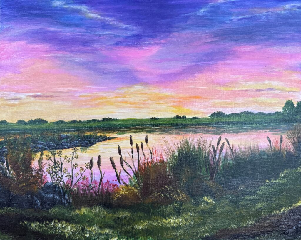 Artist Statement – “From a young age, I’ve always been creating-painting, drawing and crafting with anything I could get my hands on. Throughout my school years, I was constantly enrolled in art classes, whether it was pottery, oil painting, or painting still life with acrylics. It wasn’t until the last five years that my style truly evolved. Embracing bold, colorful art opened a whole new world for me. My flower garden serves as a major inspiration for my floral art, while my love for nature influences my landscape pieces. Through my human figure art, I am to convey the emotions we all experience in life.”