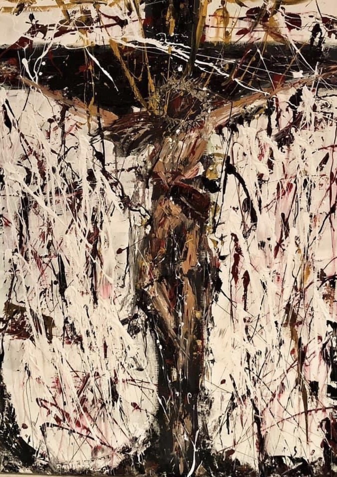 “This series is a collection and journey of what growth looks like, with each piece revealing a piece of tangled webs inside a mind looking for hope or that splinter of light at the end of a tunnel. Some people simply cannot speak and write what is deep inside, but you can give them some paint and they can make you feel it. My hope is that my art can connect with something inside of yourself, that you may be able to feel inspired to not feel alone and that if you’re in a place where you find yourself laying on the cold tile floor…that God speaks to you and says, “Talitha Cumi.” And places a paintbrush in your hands.”